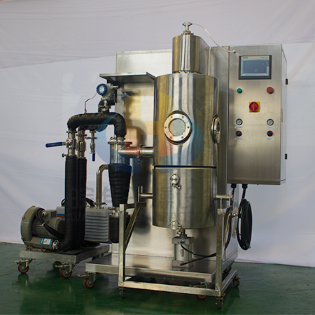 1、實驗型噴霧冷凍干燥機把噴霧干燥和真空冷凍干燥二者有機的結合起來,所需的干燥時間極短,縮短了傳統(tǒng)的真空冷凍干燥時間,且干燥后的物料為粉狀的固體,經噴霧冷凍干燥的物品,原有的生物、化學特性基本不變,易于長期保存,加水后能恢復到凍干前的形態(tài),并且能保持其原有的生化特性
